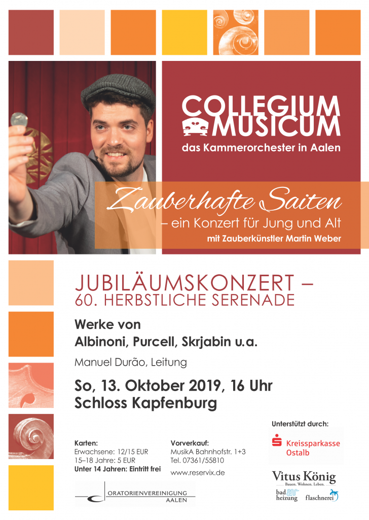 Das „collegium musicum“ der Oratorienvereinigung Aalen ist ein Kammerorchester aus aktuell etwa 25 engagierten Laien und Profis aus dem Raum Aalen unter dem Dirigat von Manuel Durao.